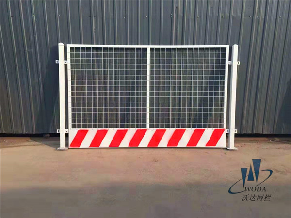 工地護欄常用顏色:黃黑相間、紅白相間,或定做,均為噴繪,以達到紅白相間的警示效果。網(wǎng)片網(wǎng)格為50*50mm,鋼絲直徑為3.0mm。