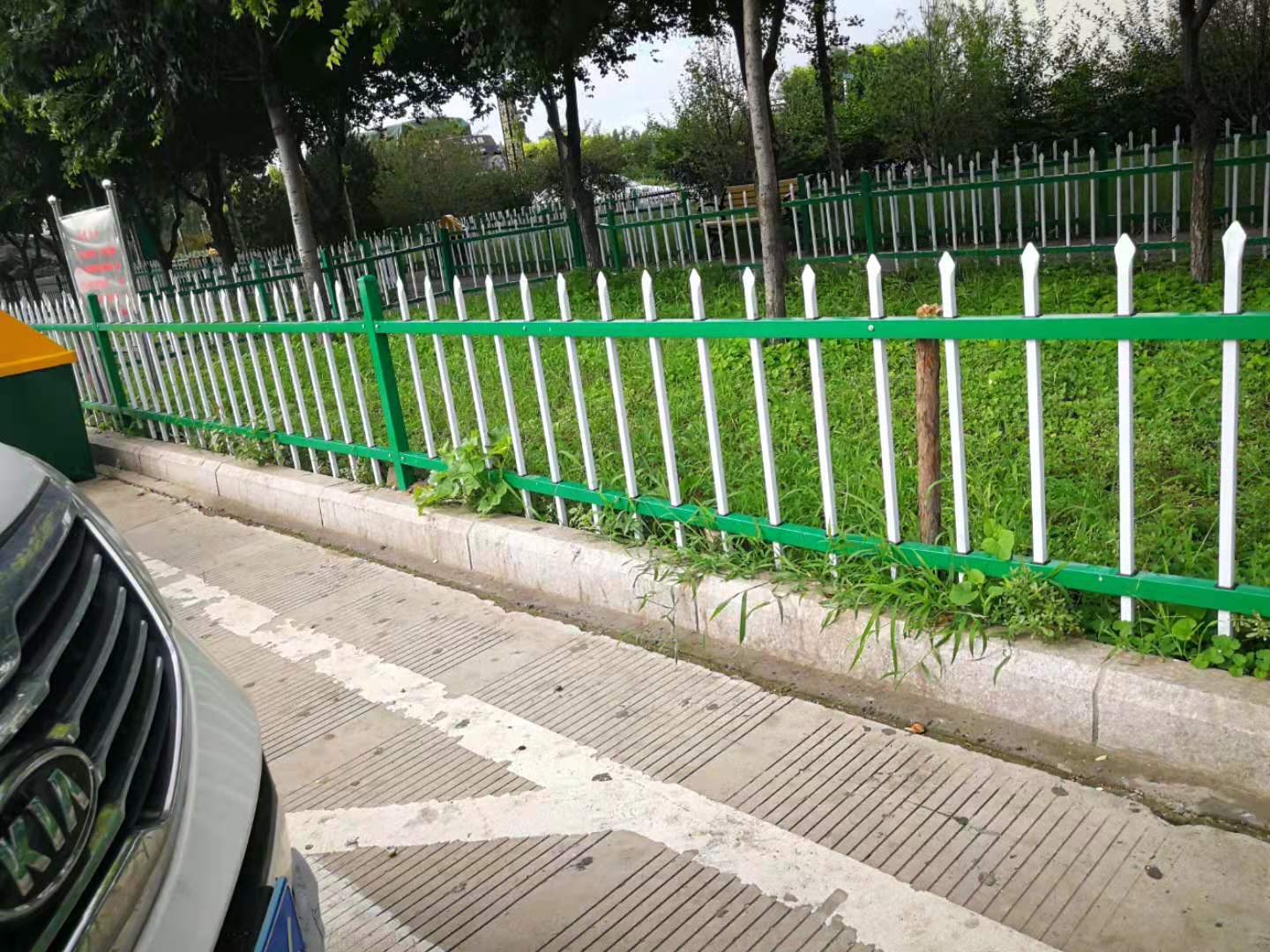 隔離帶護欄用在綠化帶上的護欄,又被成為草坪護欄或是花壇柵欄、道路護欄,在城市道路,公園,小區(qū)以及工廠等大型建造物里用于隔離和防護花草樹木的護欄。