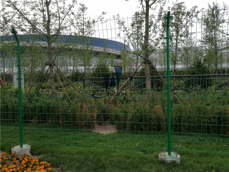 圍欄鐵絲網(wǎng)原料:常規(guī)采用直徑4mm優(yōu)質(zhì)低碳鋼絲點焊而成,絲徑尺寸范圍為3.5-6.0mm