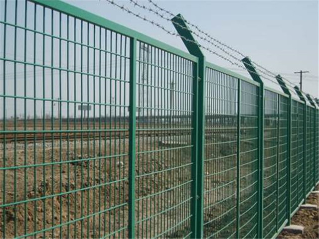 鐵路線路上采購防護柵欄是要保證安全,所以對防護柵欄要求較高。鐵路線路上使用的柵欄類型也不太一樣,根據(jù)使用的位置,鐵路防護柵欄的強度也都有區(qū)別。鐵路防護柵欄的類型大致分為:雙邊絲護欄,直框護欄,頂部30°折彎的護欄。一般鐵路線路兩側(cè)為了阻止落石或者阻擋外界的任何動物的時候會選擇雙邊絲護欄網(wǎng)作為隔離網(wǎng)。鐵路鐵軌兩側(cè)會使用直框護欄或者加折彎的護欄作為防護網(wǎng)。但是作為鐵路防護柵欄的護欄邊框不能使用普通的20*30的小邊框,而是采購30*40的方管邊框作為護欄網(wǎng)的邊框與低碳鋼絲焊接?;蛘呤且凿摪寰W(wǎng)作為網(wǎng)片,四周焊接角鐵,也被稱為框架型的鐵路防護柵欄。安裝尺寸:1.8米*3米,柱中到柱中,鐵路線路上常采用水泥立柱與網(wǎng)片連接。邊框:30*40mm,或者40*40的角鐵。表面處理:浸塑草綠色或者浸塑墨綠色。