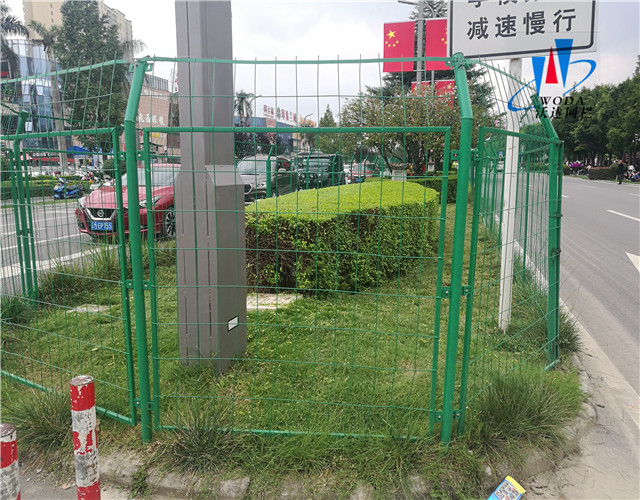 園林隔離防護(hù)網(wǎng),網(wǎng)面焊接后進(jìn)行了折彎處理增加了防護(hù)網(wǎng)整體強(qiáng)度。園林隔離防護(hù)網(wǎng)表面采用了全新熱浸塑工藝,從而達(dá)到了讓園林隔離防護(hù)網(wǎng)在戶外雨淋日曬不會(huì)生銹。立柱采用國(guó)標(biāo)Q235鋼管,表面處理也同樣采用熱浸塑,使護(hù)欄網(wǎng)整體使用壽命12年以上。產(chǎn)品價(jià)格低廉,品種全,樣式美觀,防腐壽命長(zhǎng),特別適合大面積使用。