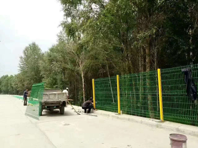 先固定好第一根立柱,然后把網(wǎng)片掛接到立柱上。緊接著掛接第二根立柱,接好后把第二根立柱固定好,然后掛接第二張網(wǎng)片,再掛接好第三根立柱。以此類推,一套一套的安裝,直到最后就可以了。這樣安裝的話既牢固又不會損壞網(wǎng)面。為防止立柱歪斜可以用固定物支撐住立柱,此時可以再次測量柱子到柱子的位置,如果不對可以微調(diào)一下柱子。如果是為了使護欄更牢固,可以在坑中填制混凝土。